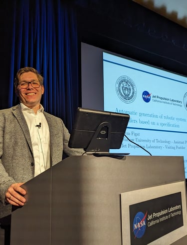 On March 4, 2024, I was honored to have the opportunity to present the results of my Ph.D. research at the NASA Jet Propulsion Laboratory Postdoc Series. My work, which has been recognized with three national awards, including the Prime Minister's Award (Kancelaria Prezesa Rady Ministrów), was defended at the Warsaw University of Technology (Politechnika Warszawska). The presentation took place in the Von Karman Auditorium of the NASA Jet Propulsion Laboratory. Thanks to the Kosciuszko Foundation for funding my Visiting Postdoc at the Jet Propulsion Laboratory.